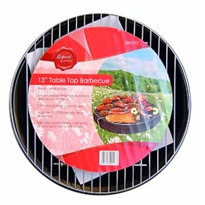 13'' Round Table Top Barbecue Portable BBQ BRAND NEW Compact Design For Flats/Appartments FEATURES: Easy to assemble 13'' round bbq ideal for Flats/Appartments, Indoors, garden, picnincs, beach, camping ; caravaning Steel Construction chrome plated cooking grill Tough baked finish for durability ; easy cleaning enamelled fire bowl approx 13''/330mm cooking diameter